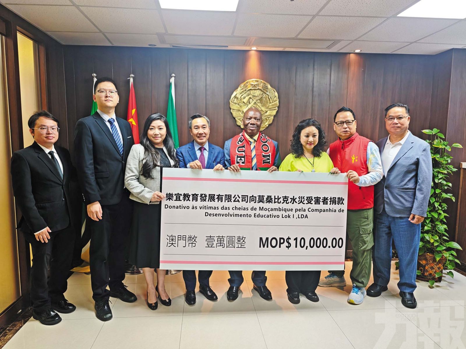 應莫桑比克共和國駐澳門總領事的要求,三月三十日上午十一時,澳門公職人員協會會員大會主席姍桃絲、澳門博彩中介人專業協會主席余堯洪、中華傳統文化協會副主席余堯輝、樂宜教育發展有限公司董事總經理黃惠子等一行,前往莫桑比克駐澳門總領事館,捐贈一萬澳門元善款,持續為當地抗洪救災及重建工作貢獻力量。