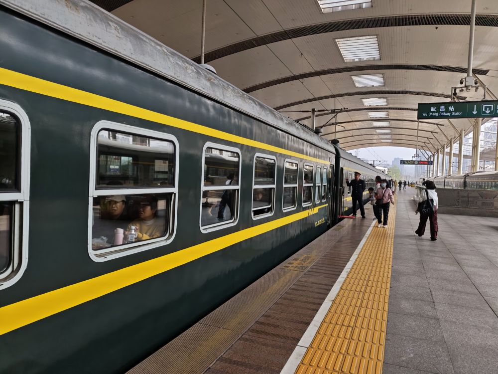 近日,记者从武昌火车站出发,搭乘从武昌至武昌的4818次列车,全程2小时,横跨长江,途经黄鹤楼、武汉长江大桥和东湖……在慢行的绿皮车厢里,感受了一趟“穿越时空”之旅。