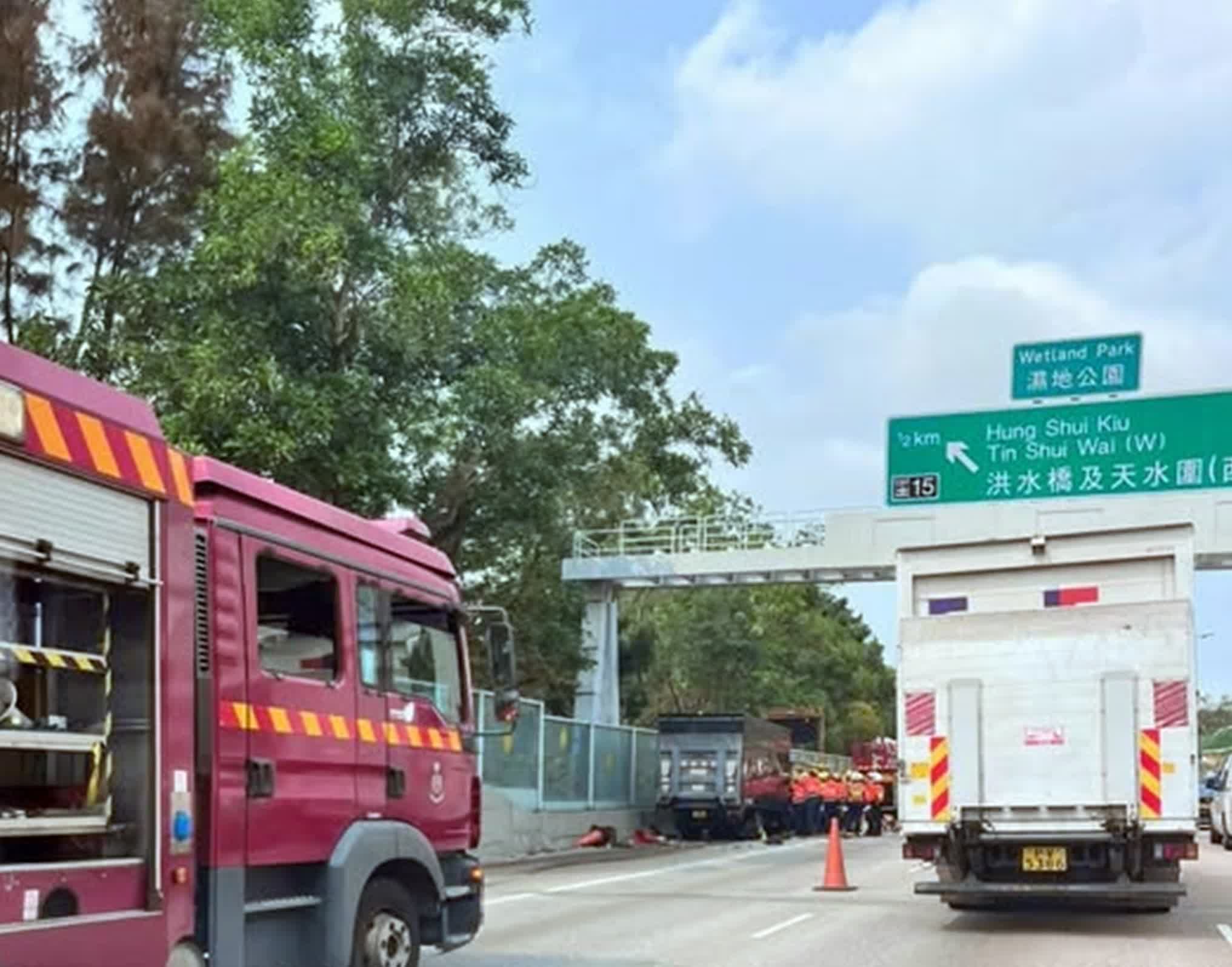 由網上流傳的一條車Cam片段可見,當時左邊避車線上停有一電單車,而前方不遠的避車線上則有一輛箭咀工程車。期間不知何故,該密斗貨車駛入避車猛撼箭咀工程車車尾及發一下巨響聲,零件碎片散滿一地,該車Cam片段中亦傳出「噢...噢...」的男聲,更不禁喊道:「做乜嘢佢?」