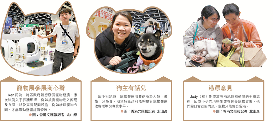 有份參展的香港寵物會業務拓展總監鄭錦珊指出,寵物主人固然要履行自身責任,兼顧社會不同群體的需求,同時爭取開放更多商場、公共交通工具、公共空間,借鑑新加坡等周邊國家或地區的成熟模式。她續指,不少商場落實寵物友善政策後,帶動了餐飲、零售等周邊消費。寵物主人亦因放寬寵物出行限制,多選擇留港消費,這部分消費力是寵物經濟的重要支撐,「餐飲業是寵物經濟的核心板塊之一,外國已有大量成功案例,韓國等多地均允許攜寵用餐。」