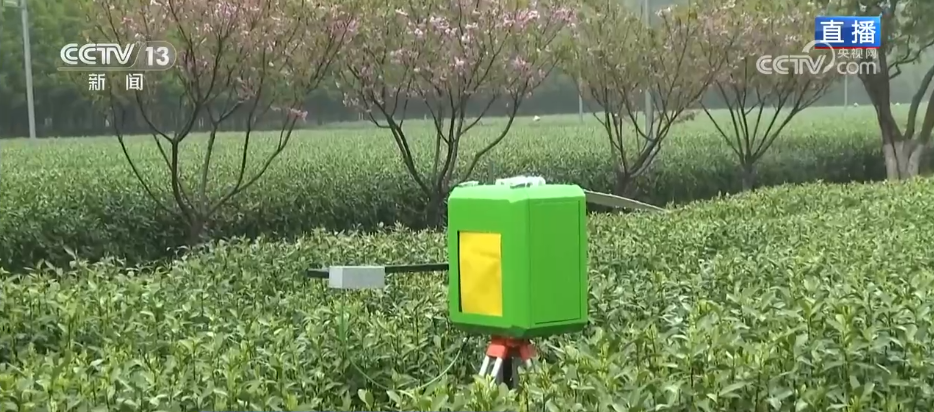 在病虫害防治上,茶农们也不用天天跑茶园查虫了。这个设备带有一个黄色的粘虫板,还有高清摄像头和AI识别系统,工作人员发现很多小害虫对黄色有趋向性,因此通过这种特殊的黄色粘虫板就可以去诱捕害虫,摄像头能实时拍图,后台的云平台就能自动识别虫子、确认种类,一旦虫情超标,就会给茶农发预警,告诉大家什么时候该防治、该怎么防。据了解,现在这套系统已经在全国很多茶区推广和应用。