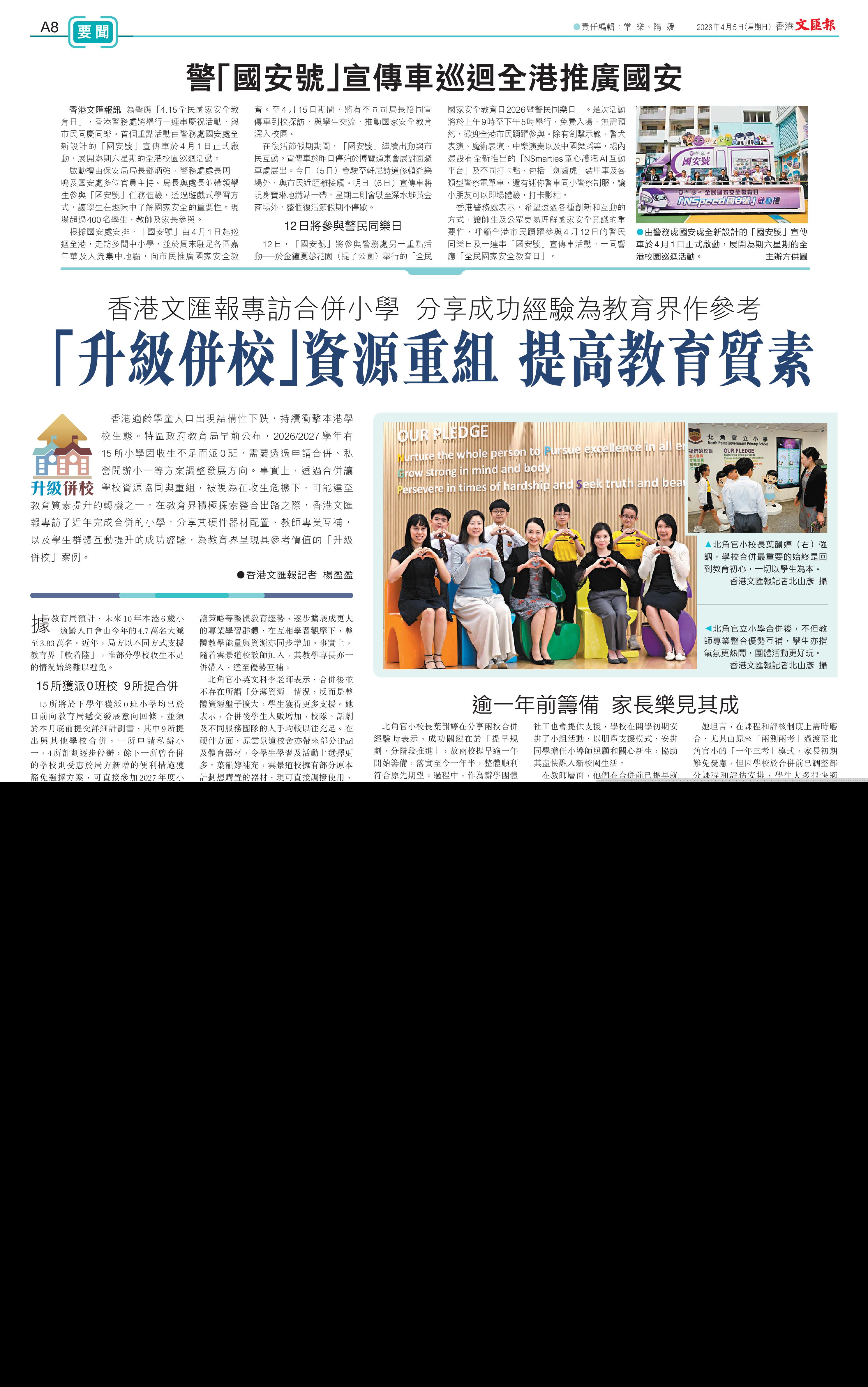 (香港文匯報記者 楊盈盈)香港適齡學童人口出現結構性下跌,持續衝擊本港學校生態。特區政府教育局早前公布,2026/2027學年有15所小學因收生不足而派0班,需要透過申請合併、私營開辦小一等方案調整發展方向。事實上,透過合併讓學校資源協同與重組,被視為在收生危機下,可能達至教育質素提升的轉機之一。在教育界積極探索整合出路之際,香港文匯報專訪了近年完成合併的小學,分享其硬件器材配置、教師專業互補,以及學生群體互動提升的成功經驗,為教育界呈現具參考價值的「升級併校」案例。
