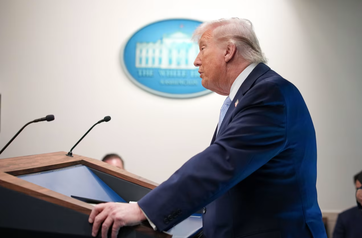 △特朗普在4月6日新闻发布会上讲话