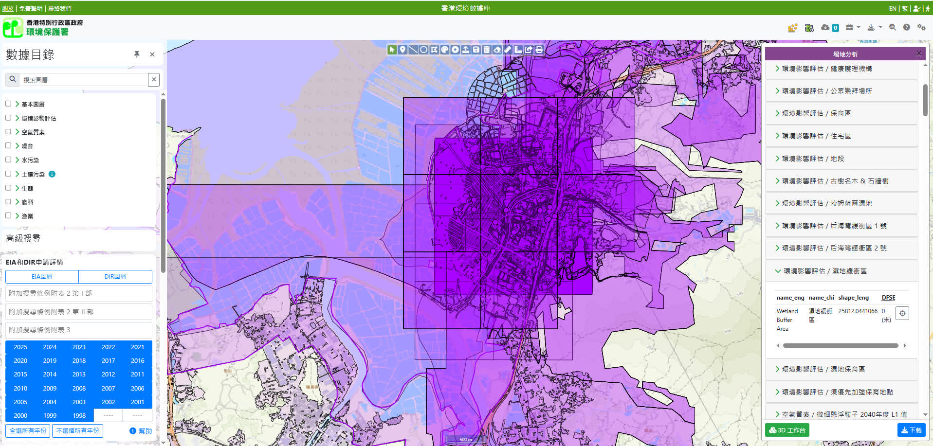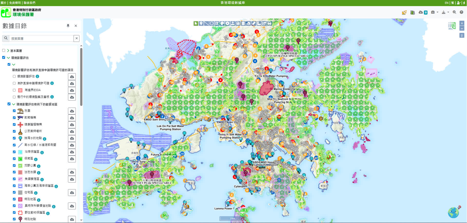 謝展寰說,香港環境數據庫(數據庫)是全球首創的公開智慧環評平台,透過人工智能及地理資訊系統技術,為環評工作帶來突破性的重大轉變,不但有效提升環評效率,將整體環評項目所需時間縮短一半至約15至24個月內完成,更從過往被動式審核收到的環評報告,改革為主動式提供數據和工具,利用發展的機遇保護甚至改善生態環境。