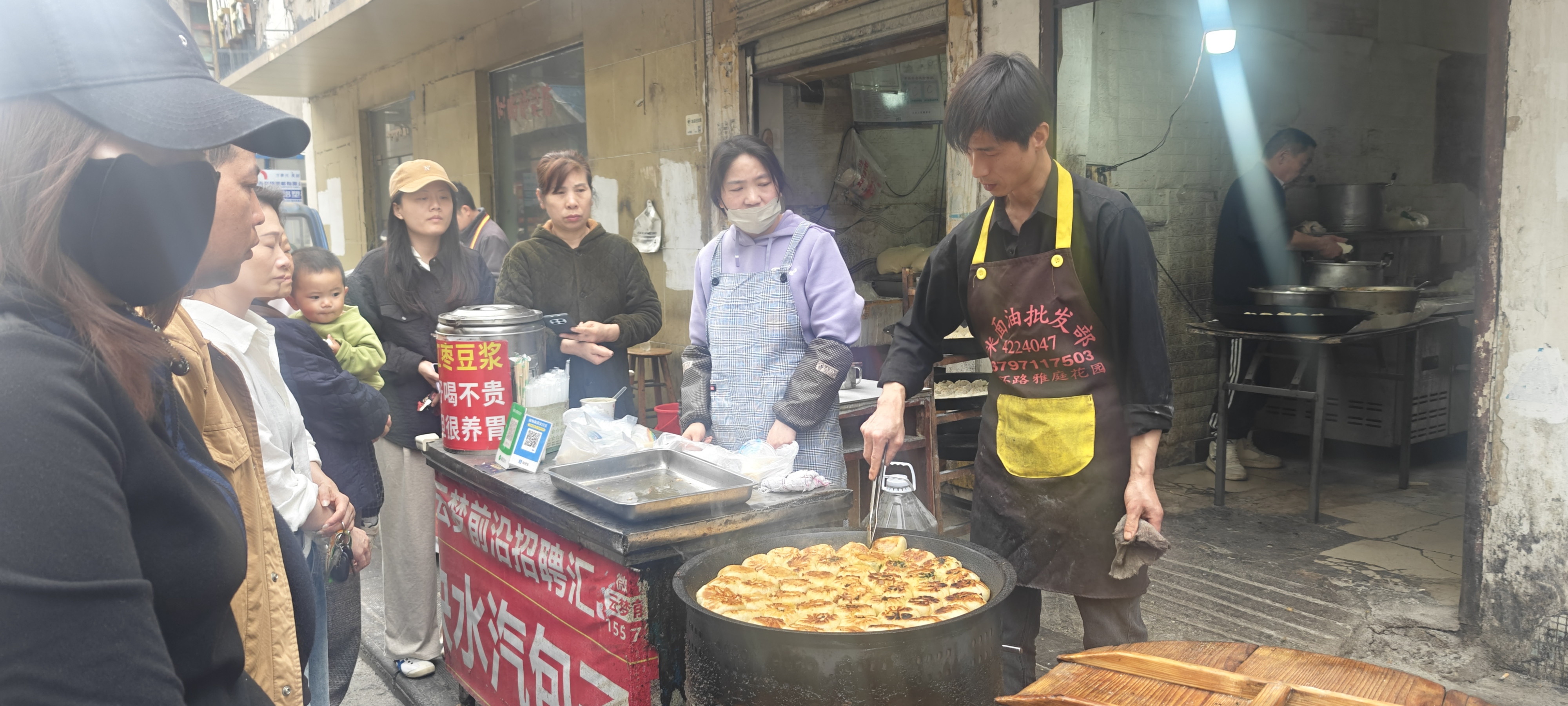 云梦并不大,骑上自行车,从老城东到老城西,二十多分钟便能穿行全程。可就是这样一座小城,早点摊的密度却令人惊叹——无论你朝哪个方向漫步,不出五十步,定然能嗅到油炸面窝的焦香,或是听见骨汤、鱼汤熬煮的咕嘟声响。