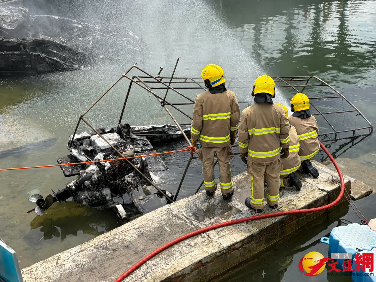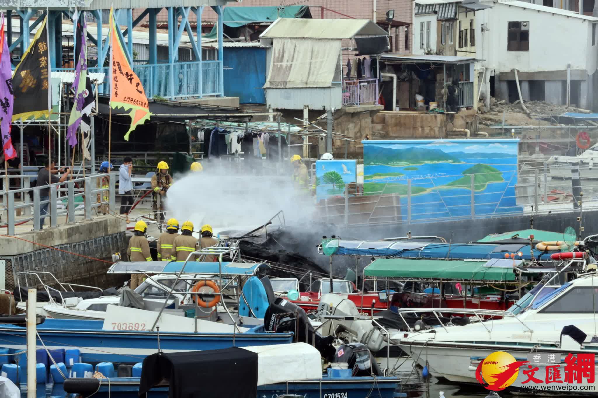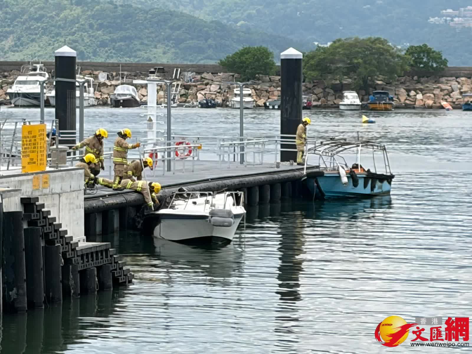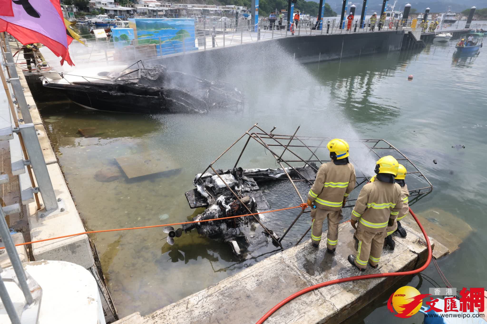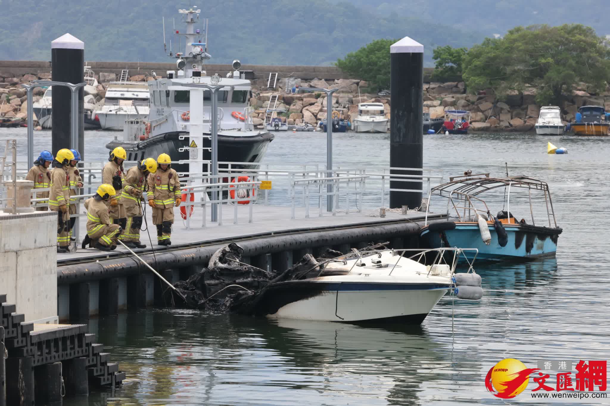 其後消防員奉召到場,迅將4船隻分開及動用一喉及一隊煙帽隊於下午約1時31分將火救熄。香港文匯報記者現場所見,其中兩隻被拖到碼頭岸邊的船隻已被嚴重焚毀入水擱淺傾側,另有兩隻船被拖到碼頭的另一邊,當中白色船身的船隻亦燒毀嚴重,另一隻藍色船身的船隻頂篷已被燒毀。消防現在調查起火原因,初步無人受傷。
