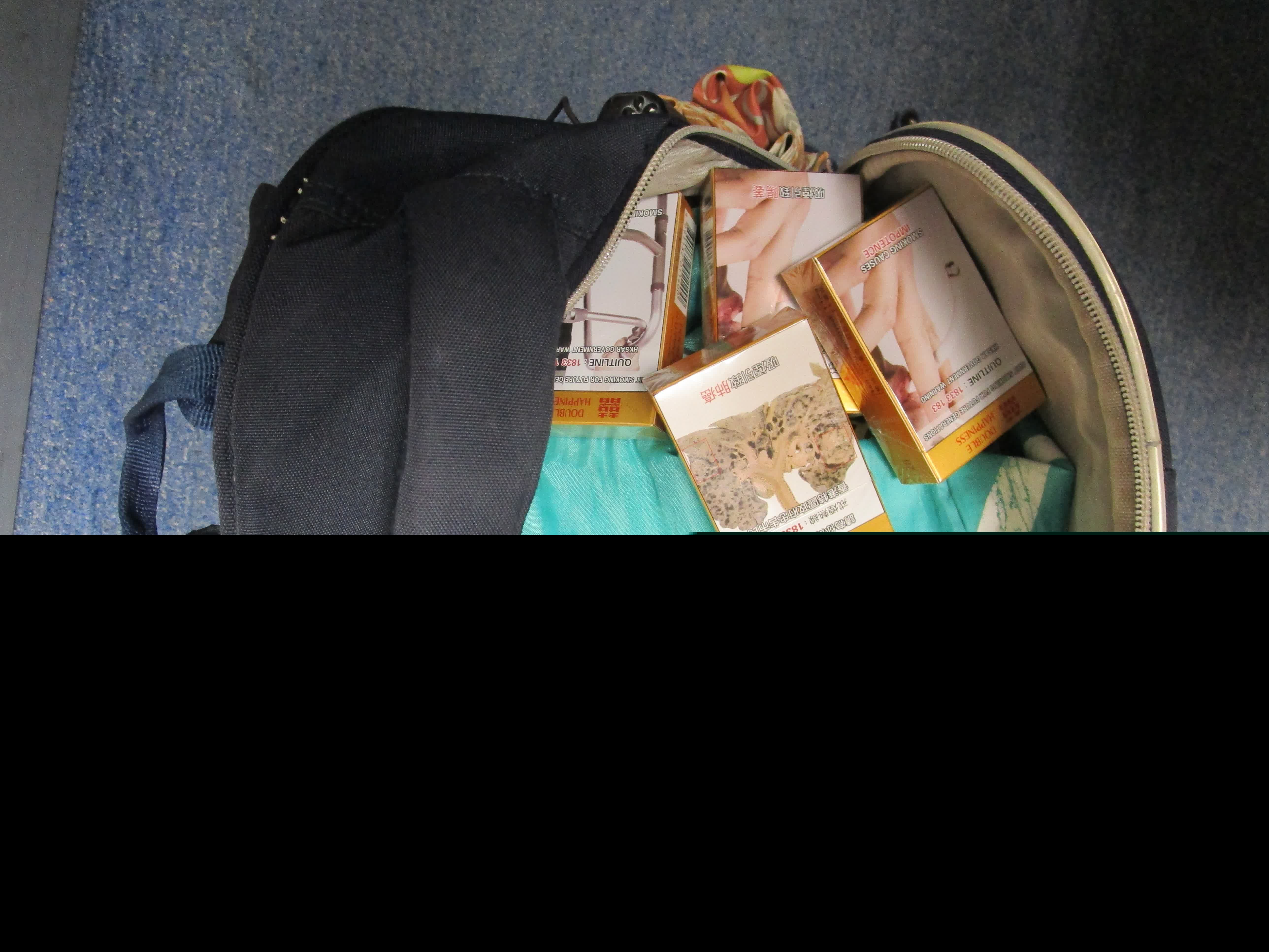 另外,海關人員於3月31日在同一管制站截查一名55歲抵港女旅客,並在她身上和攜帶的個人行李內共檢獲599支未完稅香煙,估計市值約2 500元,應課稅值約2 000元。該名旅客隨即被捕。她今日被法院判處監禁4星期及罰款3 000元。
