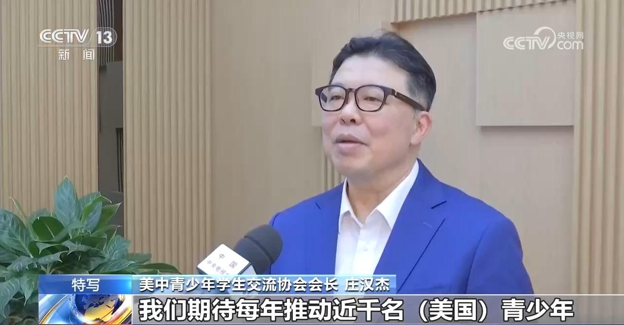 美中青少年学生交流协会会长 庄汉杰:一开始的时候是到学校去交流,然后去看一下中国的名胜,后来就越来越专业了。我们期待每年推动近千名(美国)青少年与青年科学家来华交流,常态化地双向(青少年)互访,因为中国有很好的场景可以训练AI,让这些科技可以落实,为民所用。美国在AI方面的研究是很前沿的,但是他们在落实使用这块是比我们(中国)国内这块差一些。所以我们希望未来加强在这个领域和中国有关部门合作。今年APEC会议会在中国举办,我们将携手在北京、深圳落地两至三场配套的活动。