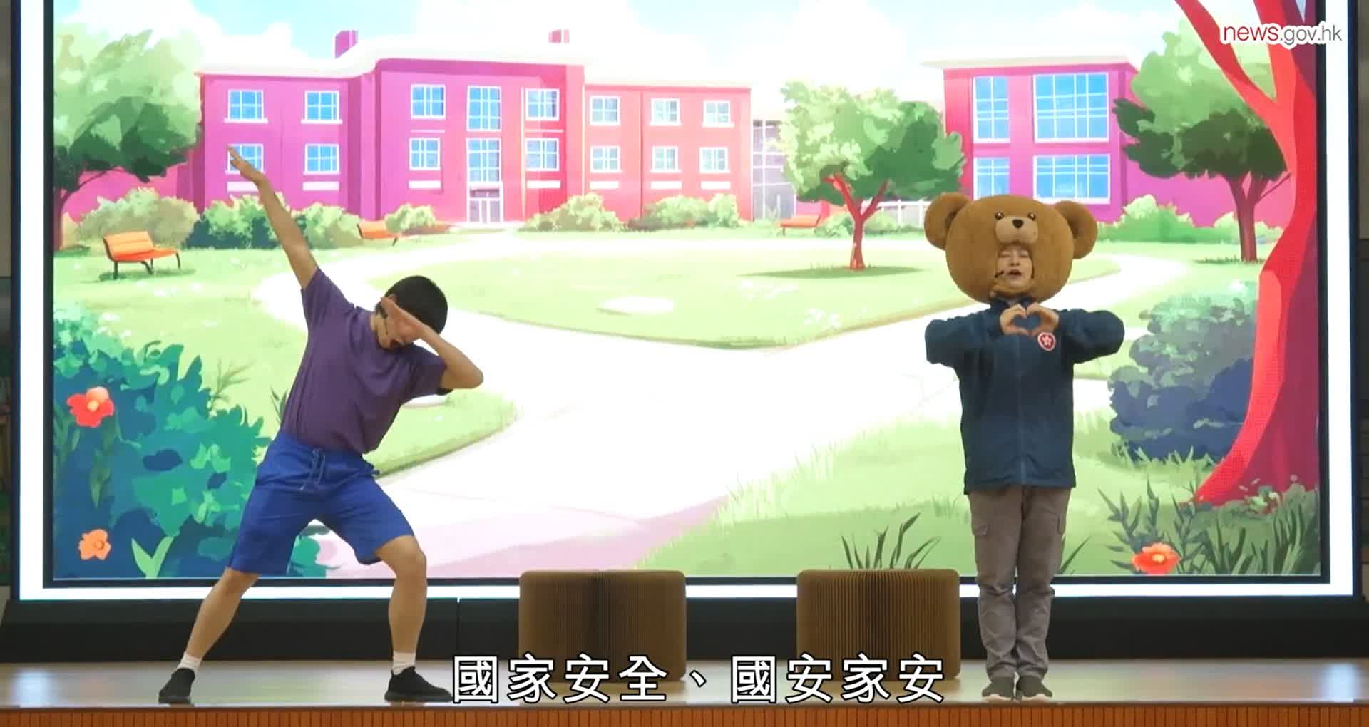 香港文匯報訊(記者 蕭景源)4月15日是全民國家安全教育日,保安局主辦的國家安全校園互動劇場,由保安局吉祥物「保安熊仔」與「安仔」粉墨登場,以生動有趣的方式將國家安全知識融入故事,透過話劇深入淺出,提醒學生慎思明辨,令一眾小學生看得入神。