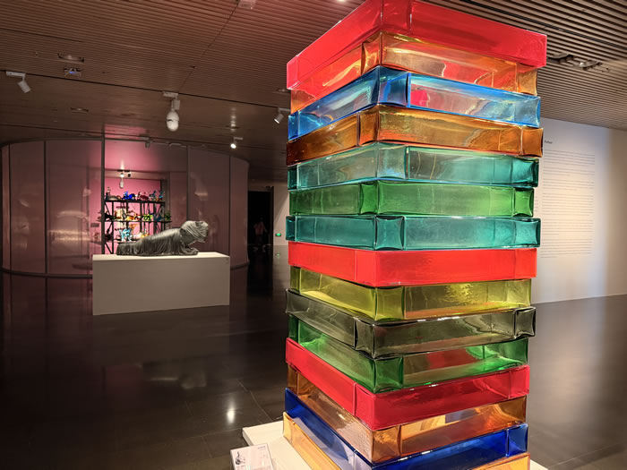 作为当代最具影响力的抽象画家之一,肖恩·斯库利以由横向、纵向色带、嵌合的色块和渐变几何图像构成的大型抽象画闻名。在《威尼斯堆叠》中,他延续这种创作方式将红黄蓝绿等彩色玻璃块叠放,在空间中构建出充满张力的色彩纪念碑——既具有建筑般的结构感,又利用玻璃的通透质感在光影下折射出灵动的视觉效果。