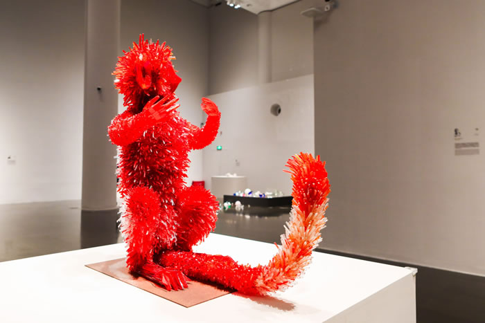 在表达玻璃呈现形式与质感的探索中,约瑟法·加施-穆赫将包豪斯的形式语法与材料思维相结合,把成千上万的玻璃碎片汇聚成星芒般向外发散,拓展了玻璃的空间张力,同时又放大了光影的视觉张力。而另一位以玻璃为主要媒介的雕塑家玛尔塔(Marta Klonowska)则用锋利的玻璃呈现本该毛茸茸的动物形象——在《婴猴》中,碎玻璃脆弱却尖锐,艺术作品的材质与既定经验的矛盾引发观者更多元维度的思考。