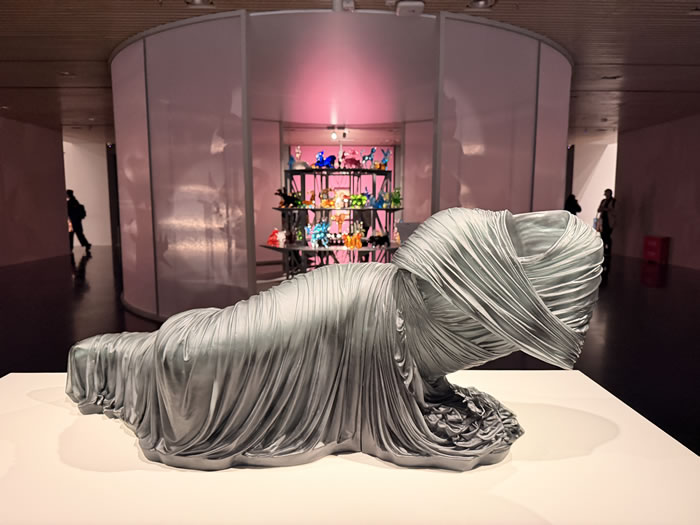 与肖恩·斯库利色块堆叠的体积感形成鲜明对比的是凯伦·拉蒙特(Karen LaMonte)的《斜倚的夜曲》。凯伦是现代玻璃艺术的代表艺术家之一,她用玻璃塑造出极具韵律的人体雕塑,工艺精细的同时又承载着情感温度。衣袍褶皱的流动感和斜倚的姿态既具有古典雕塑的优雅,又因玻璃的通透与朦胧质感而营造出空灵的诗意。