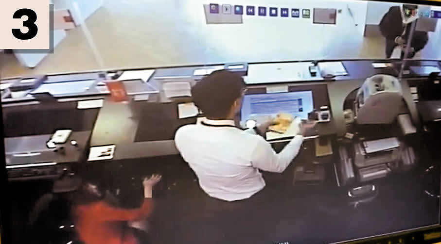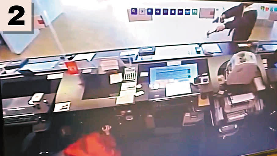 疑犯其後從衣袋內取出一把鐵錘猛力擊碎櫃位的透明膠板,因一度無職員肯就範,疑犯在櫃位外一度踱步及不停揮舞鐵錘指嚇職員,其後一名男職員走近櫃位似安撫疑犯不要輕舉妄動,然後從櫃桶內拿出一疊鈔票放入疑犯拋入的膠袋內遞給疑犯。疑犯最後奪門逃走,整個過程不到兩分鐘。47歲銀行女職員其後報警。