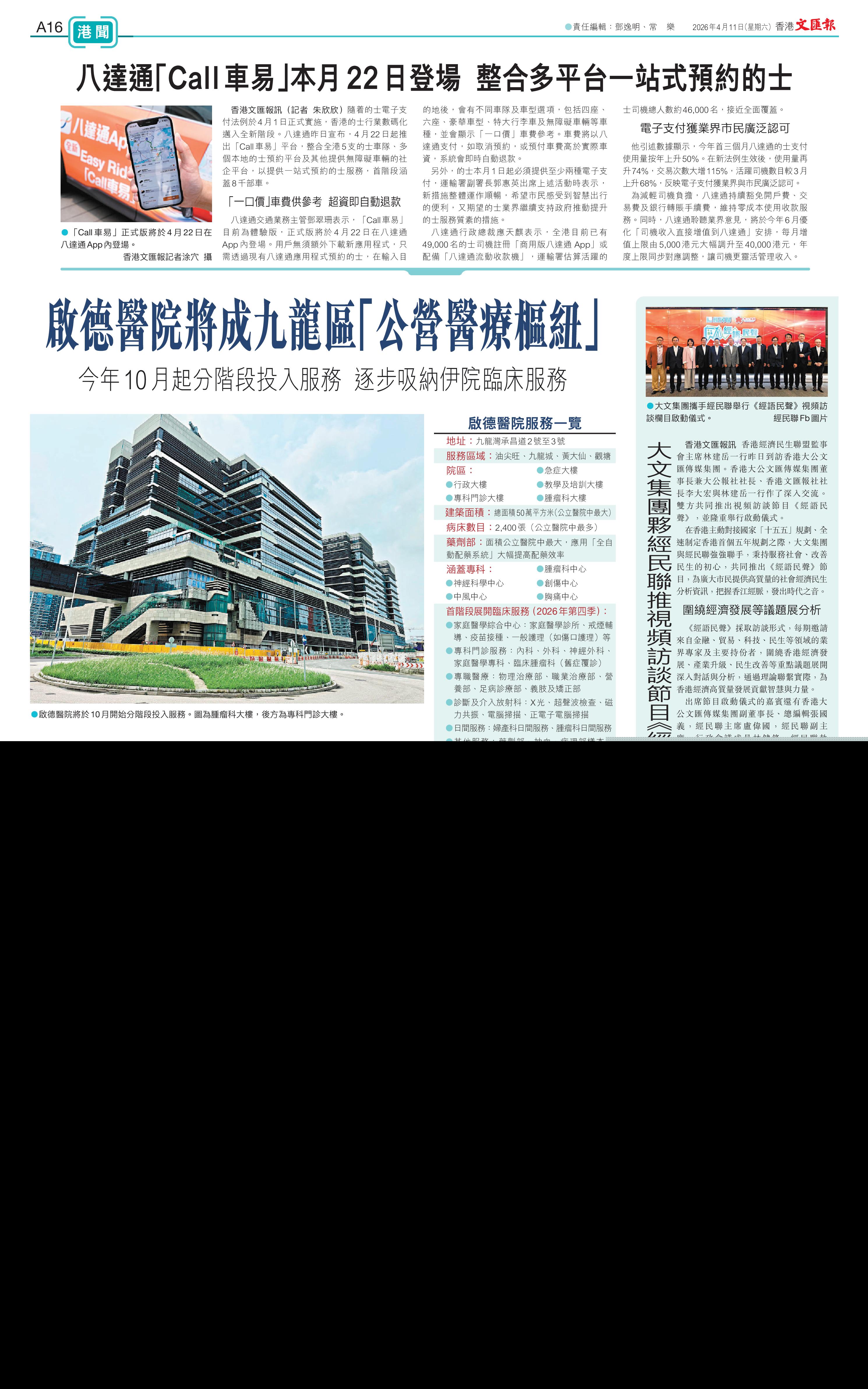 他表示,啟德醫院服務人口逾180萬,作為九龍中醫院聯網的龍頭醫院,將與區內其他醫院分工協作,優化九龍區急症醫院的整體布局,使公營醫療資源分布更均勻、服務更有效率。由於服務量及病床數遠超伊利沙伯醫院,現已逐步增聘人手以應付轉變。