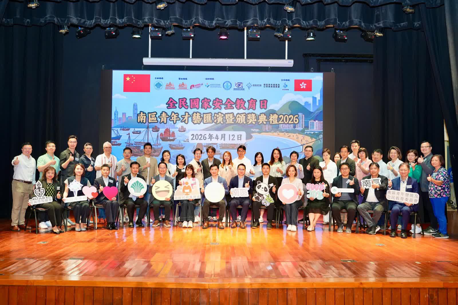 為迎接4月15日「全民國家安全教育日」,由香港南區各界聯會、南區民政事務處合辦,南區區議會全力支持,香港南區青年發展聯會、南區建設力量、南區撲滅罪行委員會、南區青年團、南區青年發展及公民教育委員會聯合協辦的「2026全民國家安全教育日——南區青年才藝匯演暨頒獎典禮」今日於南區順利舉行,現場氣氛熱烈,市民反應踴躍。