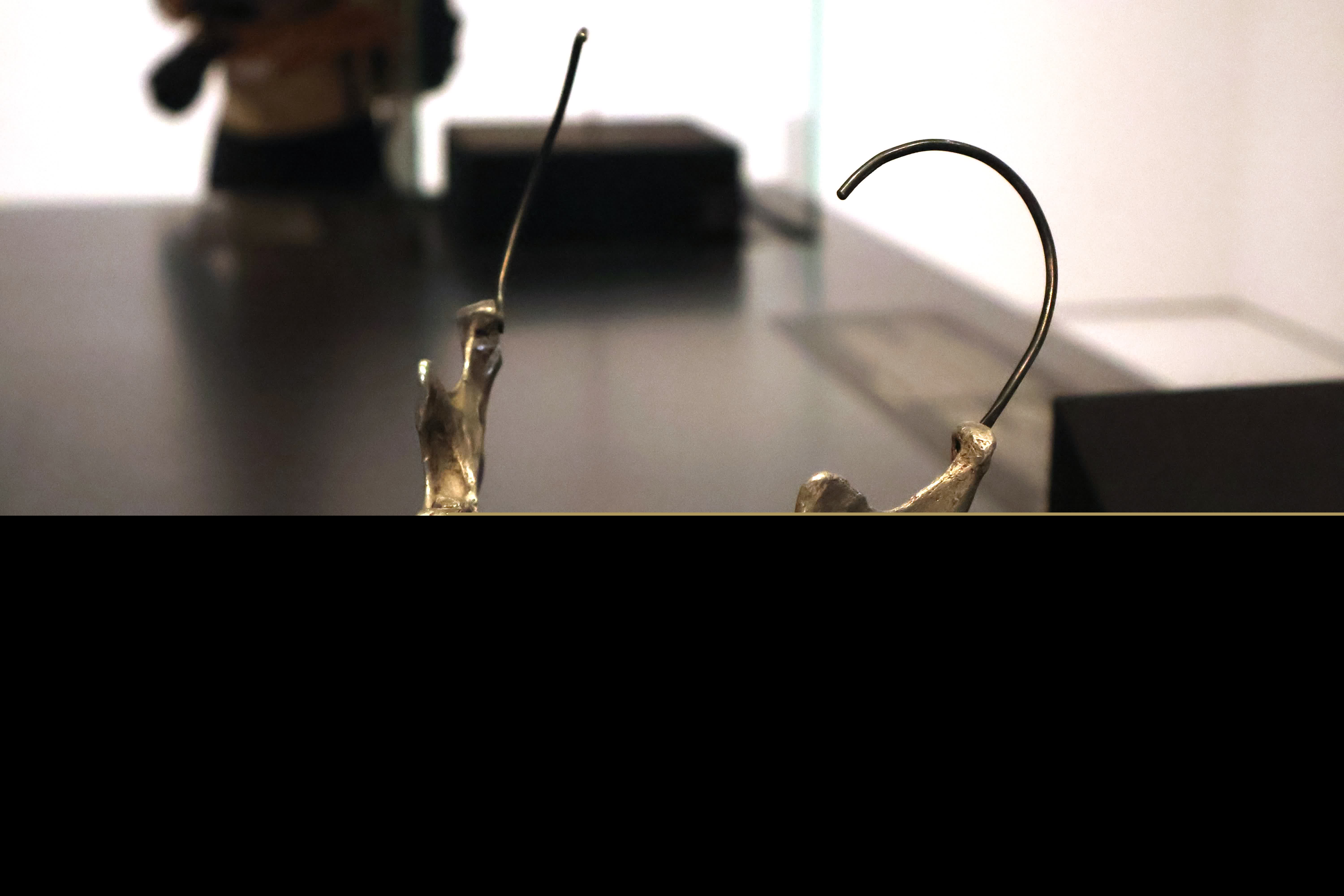 至於頭飾方面,有出土自古埃及公主陵墓的1,251枚黃金假髮環(約公元前1887-1813年),用於裝飾其典禮假髮,反映頭飾作為古埃及皇室身份象徵的重要性;源自南美洲哥倫比亞卡利馬文化的頭飾(1至7世紀),以及一件由時裝設計師艾爾莎·夏帕瑞麗創作、帶有超現實主義風格的頭飾(約1937年)。此外,由卡地亞於1905年左右推出的鑽石長柄眼鏡;以及由時裝設計師亞歷山大·麥昆與珠寶設計師桑恩·利恩合作、名為「男士下顎骨配飾」的面部飾品(1998年)同樣備受注目。