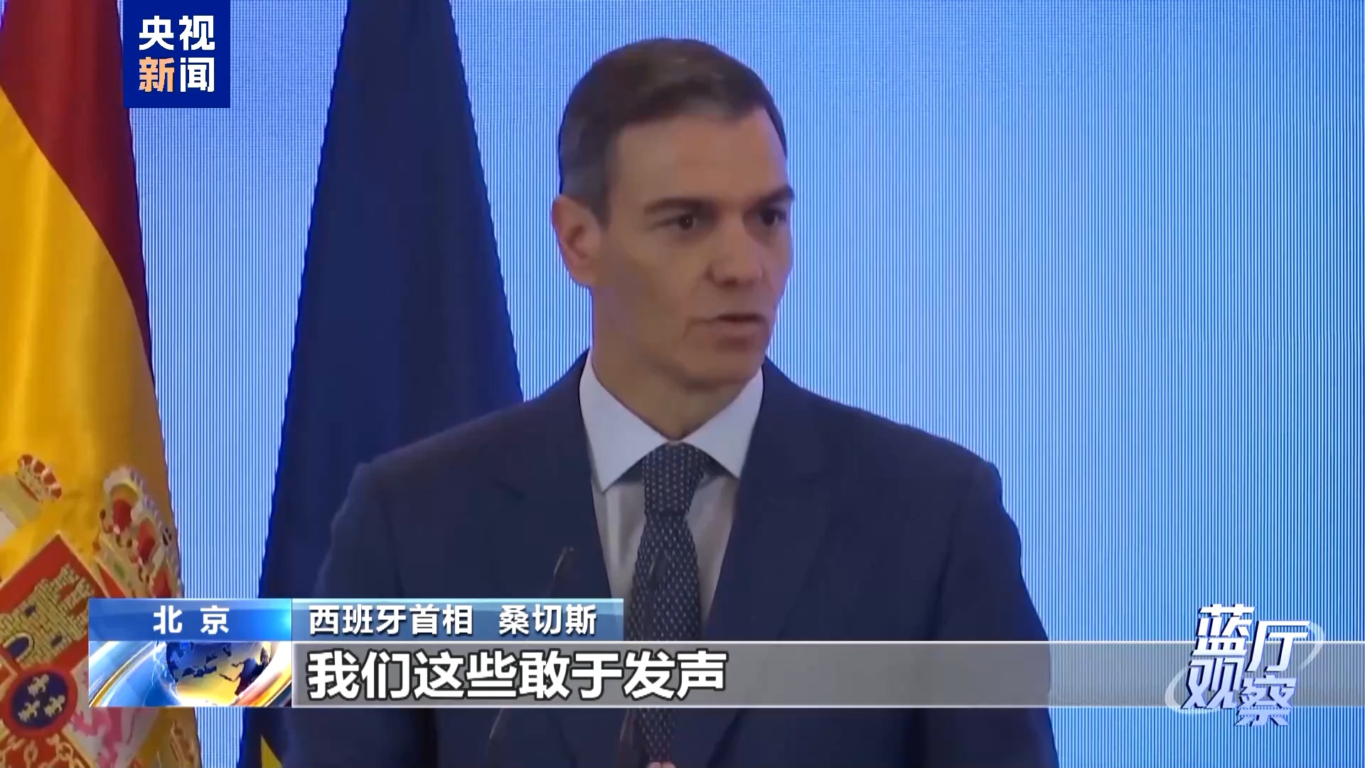 西班牙首相 桑切斯:今天国际法正被肆意践踏,然而具有讽刺意味的是,我们这些敢于发声、反对违反国际法国家的人,却发现自己正受到这些国家的威胁。我认为,西班牙在外交政策上,始终保持一贯立场。我们必须尊重国际法,尊重基于规则的国际秩序,让“强权即公理”及“丛林法则”无处容身。