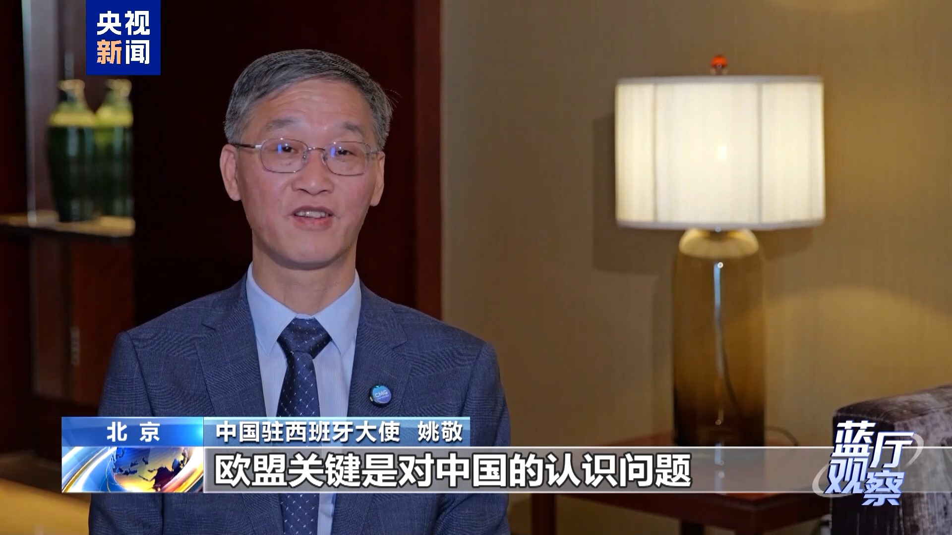 中国驻西班牙大使 姚敬:欧盟关键是对中国的认识问题,就是怎么看待中国的发展跟它自身的利益。我觉得像西班牙这样的国家,它秉持的是一种开放、合作的态度,因为它看到中国的发展是一个机遇。欧盟作为一个国家集合体,它的利益取决于成员国的利益,成员国的呼声、成员国的要求、成员国的对华态度,我觉得某种程度上应该成为欧盟机构认真考虑的一个问题。所以我们希望通过这样的双边交往,能够推动中国和欧盟的关系整体有一个积极的发展。