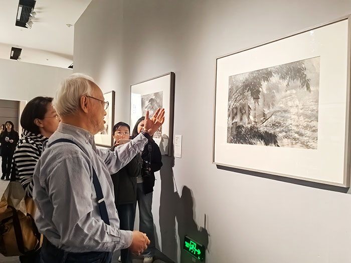 在展览花鸟作品展区,刘墉的花鸟创作从“观物精微”的写生和分析入手,用科学的方法敏锐观察,用细致的笔触翔实记录,于分毫间掌握物形、深入物象。
