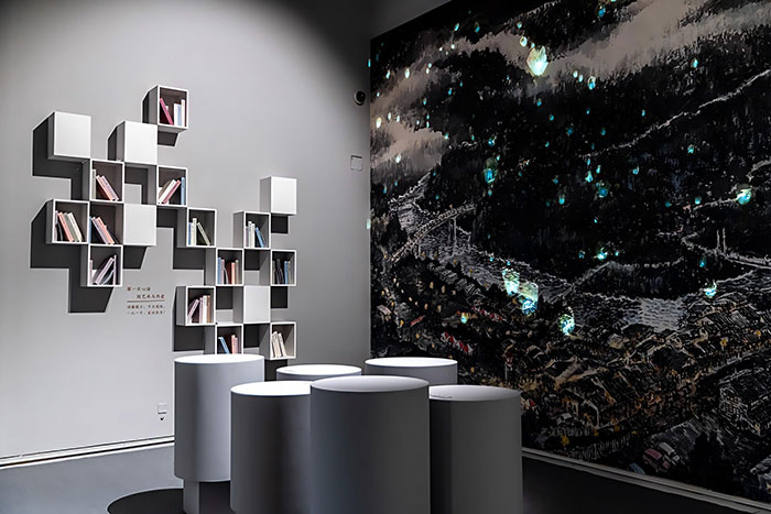 在展览最后一个展厅,以刘墉“用文字记录成长、用思考指引人生”的创作内核为依托,在以刘墉作品“天灯”意象为主要背景的数字环境中,策展团队给观众和艺术家打造了一个温情、舒缓、治愈的互动空间,沉浸式呼应刘墉“心灵沟通”的理念。