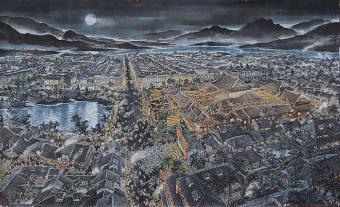“可以观、可以游、可以居”是刘墉秉持的艺术创作理念,展览现场展出的多件大尺幅风俗题材画作,记录了刘墉儿时对家乡的记忆。于他而言,绘画不仅是定格景致的空间艺术,也是承载岁月的时间艺术,亦是安放情怀的归处。凭借深厚的文学造诣,刘墉总在笔墨间巧融诗的意境、散文的肌理与小说的况味。他写童年院子、喧嚣市井、清寂巷弄,写朦胧月色、迷离灯火,暮霭炊烟,这些世间百态和人间风物后来被他挪移摹画于画卷之上,此刻正栩栩如生、声情并茂地重现在观众面前,艺术家以笔墨绘就出个体生命记忆背后那幅栩栩如生的社会生活与时代画卷。