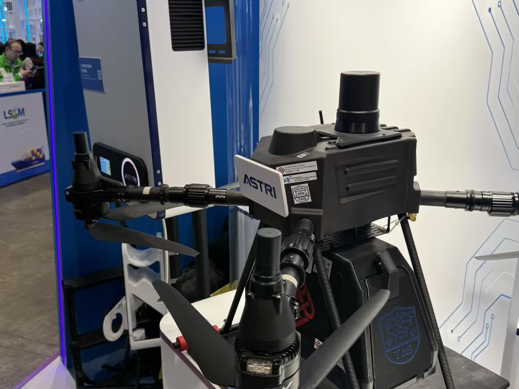 香港應用科技研究院在與本月1日與納米及先進材料研發院(NAMI)合併後首次公開亮相,在InnoEX中,亦展出了「送藥無人機項目」,該項目的目標是能在市區內精準運送輕量包裹,該無人機搭載了路側單元設備,輔助全球衛星導航系統實時動態視覺,和慣性導航系統緊密耦合定位演算法,即使在非視距干擾中仍能維持精確定位。