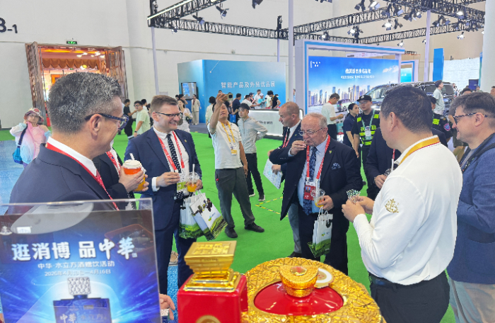 在本届消博会现场,中华酒圈粉无数,众多客商驻足打卡品鉴,为其醇厚细腻的口感和独特的产品设计点赞。