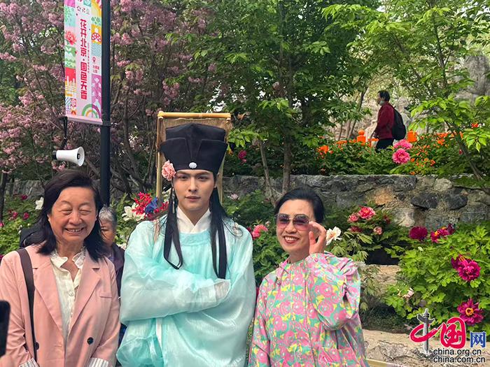 本届牡丹节深度融合传统文化与现代科技,让赏花体验更具新意。园内特别设置了NPC沉浸式互动打卡体验点,由北京服装学院美术学院的学生扮演古风使者,引导游客对诗答题、投壶合影、闯关集章,集齐即可兑换春日好礼。宫锦台打造牡丹花主题旅拍场景,游客可化身“花神”拍摄古风大片,沉浸式感受国风韵味。