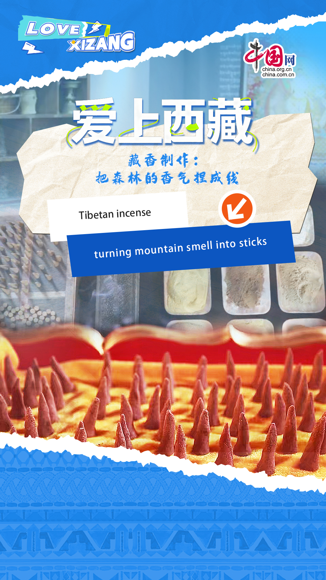 Alex visits a Tibetan incense workshop and tries making incense by hand, turning the scent of the mountains into slender sticks.The origins of Tibetan incense are often told through two traditional stories. Through the experience, Alex comes to feel the deep reverence people hold for nature and tradition.