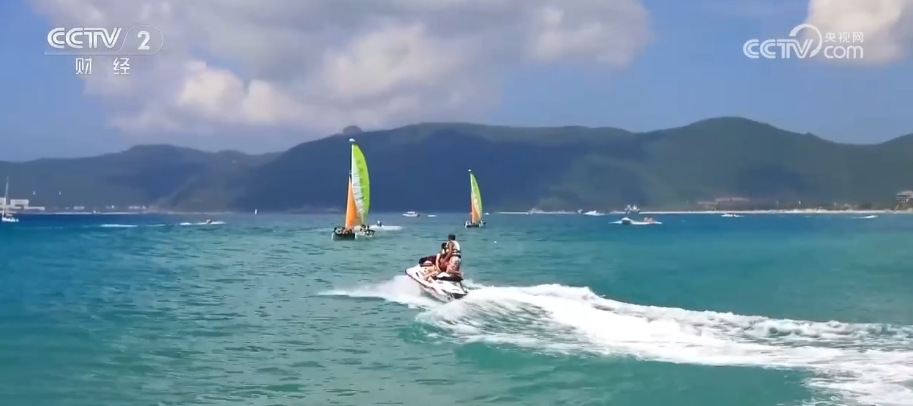 2026年1月份,国务院首次将游艇消费列为服务消费新增长点。正在海南举行的消博会上,90余家国内外游艇参展商带来了200艘游艇,成为消博会的一大看点。2026年消博会,三亚国际游艇分展区设有中国船艇制造出海、绿色船艇创新、“游艇+”生活方式展示等6大特色专区,纯电动、氢燃料、零碳艇是绝对“主角”。除了产品绿色化,体验方式也更多元,冲浪、海钓、潜水让游艇消费悄然升温。这里是位于三亚蜈支洲岛的码头,这里有着各种各样的游艇。这艘艇造型比较奇特,它叫做造浪艇,它在行驶的过程当中船尾两侧制造出一米左右的浪花。据介绍,尾波冲浪考验的是人的体力和胆量。当冲浪者驰骋在浩瀚水面上,那种冲击力和征服感让人畅快淋漓,这也是吸引游客体验的关键因素。
