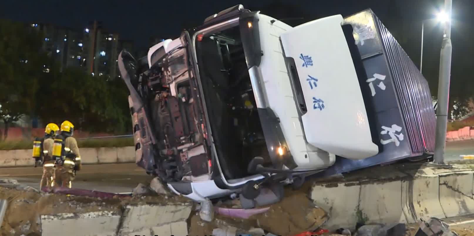 凌晨呈祥道重型貨車失控撞壆翻側驚險意外