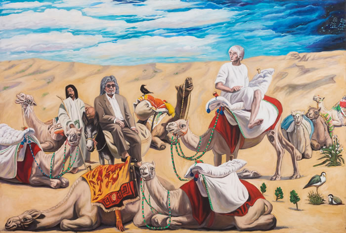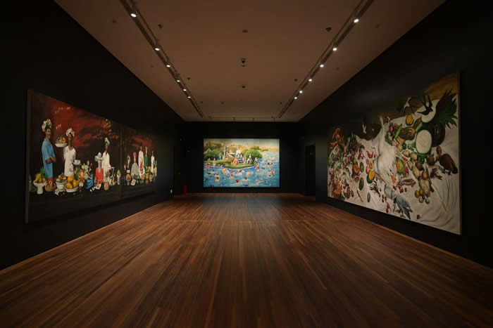 《一千零一夜》作为整场展览的象征与联想,意味着不同的故事、现实、语言,如何组成秦琦多样而又立体的风格。故事中的雨林、季风、沙漠、海洋和热带岛屿的异域色彩、遥远的距离感,又为我们揭示秦琦作品中独特的‘泛东方主义’立场。他如何在西方经典绘画和中国民族绘画中,在始终困扰我们的中西方二元对立中,发现、靠近并探索一条源自第三方的中间地带,他山之石可攻玉。”