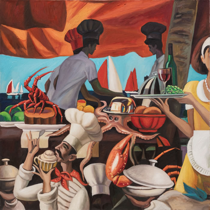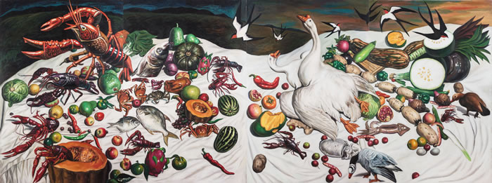 秦琦 南瓜蒸龙虾 120x120cm 布面油画 2019