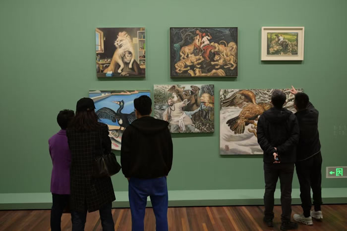近日,在松美术馆的极简空间里,秦琦个展《一千零一夜》呈现了一场充满智性幽默与生猛视觉冲击的叙事盛宴。标题既非直指东方寓言,亦非简单援引异域想象,而是精准隐喻了秦琦近15年来持续不断的“故事生产机制”:层层嵌套、真假参半、在写实基底上不断添置“荒诞”注脚的绘画实践。