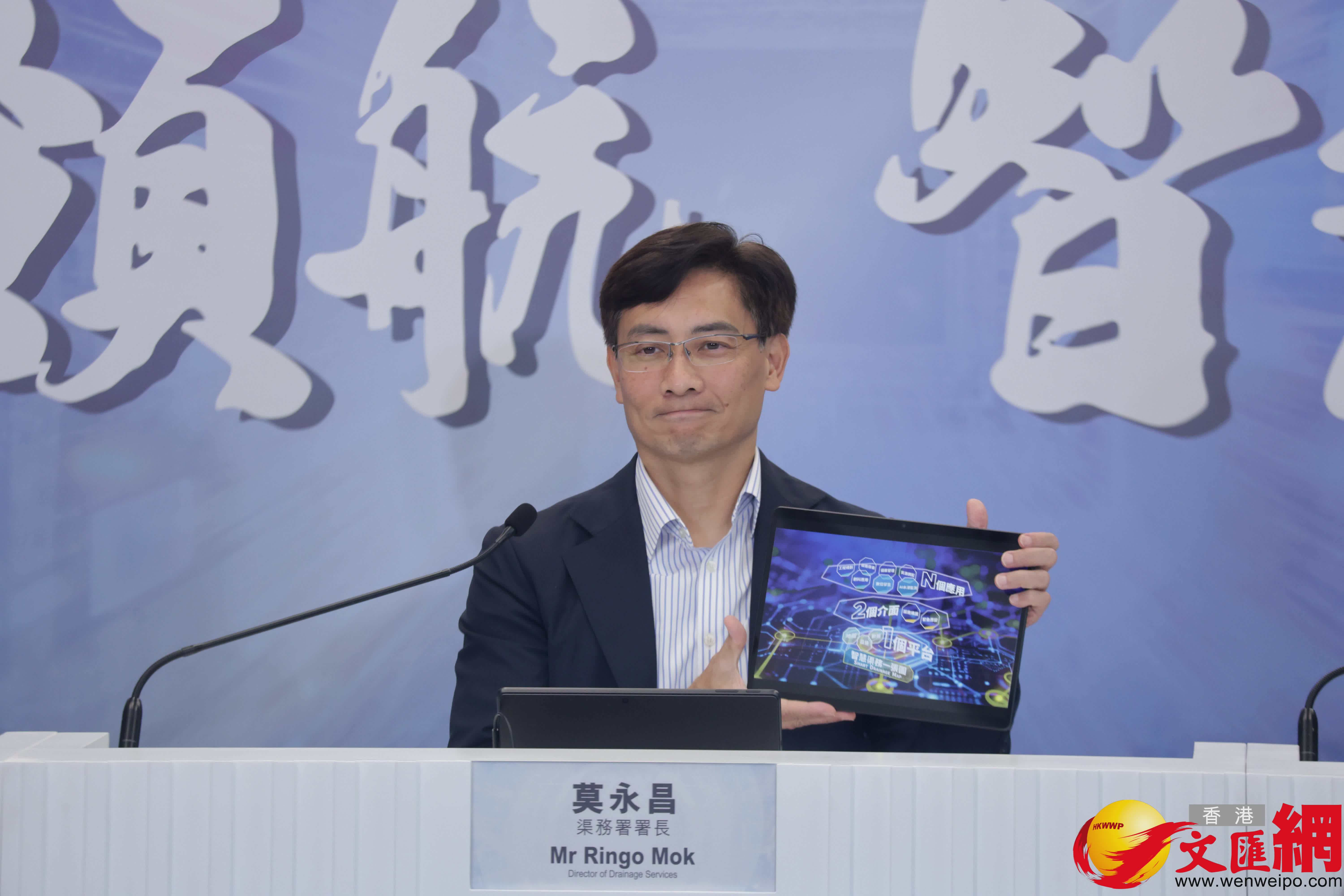 渠務署署長莫永昌表示,署方今年正式啟用自行研發的「智慧渠務一張圖」,整合天文台、地政署及運輸署等跨部門數據,實時顯示水浸地點及緊急應變隊伍分布,提升預警與應變效率。同時,渠務署引入智能渠管高壓水沖「水沖沖」及智能渠管清淤機械人「抓抓仔」,可無線遙控,靈活穿梭管道進行疏通。署方亦將應對超強颱風期間增至200隊的緊急應變隊伍編制恒常化,確保惡劣天氣下能迅速處理水浸。