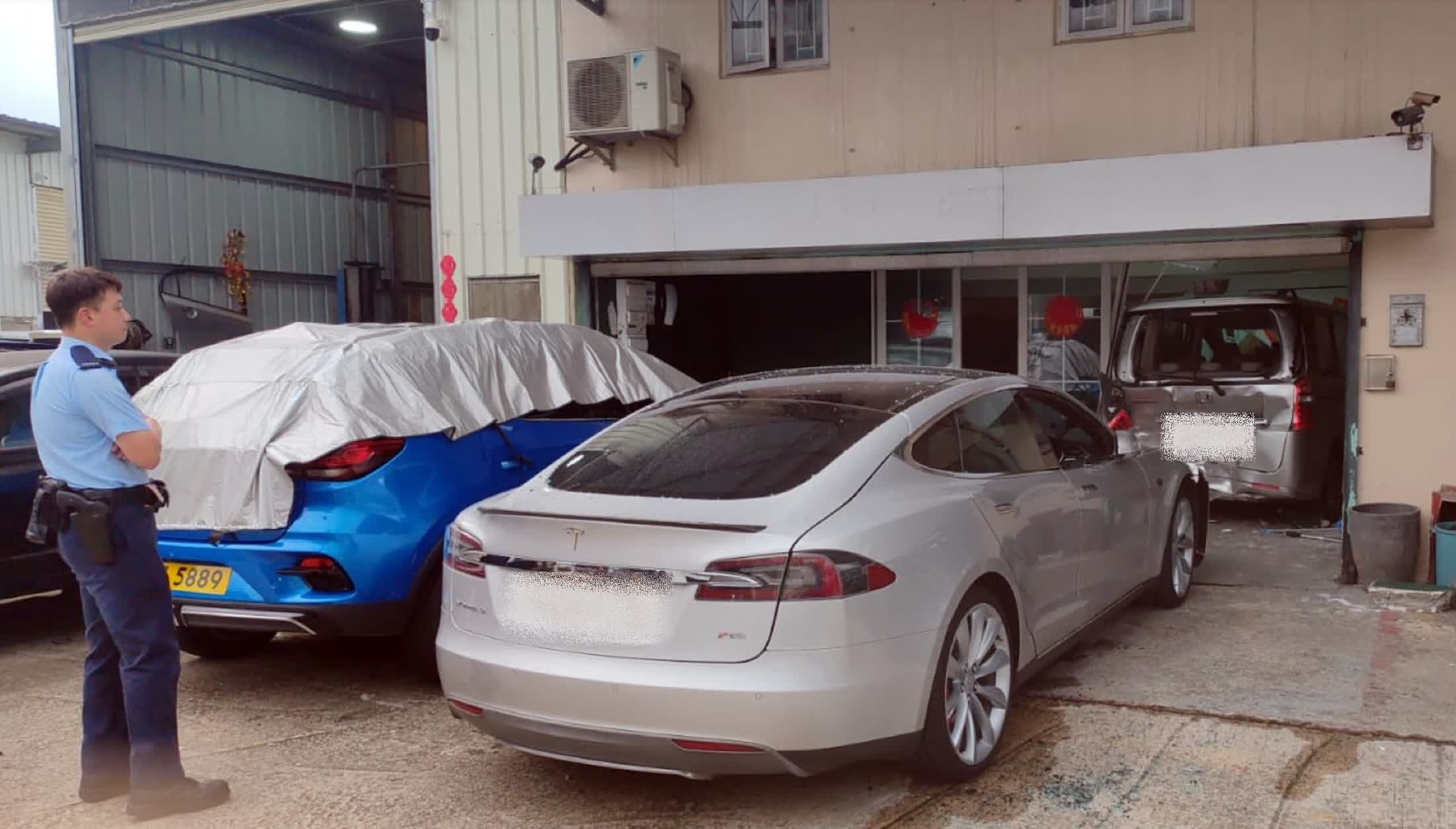 香港文匯報訊(記者 蕭景源)今日(20日)早上約10時,一名16歲少年在西貢鹿尾村路一車房首日開工期間,疑「揸大膽車」開動一輛Tesla電動車移位時,踩錯油門令車輛失飆前,直撞向一輛停泊在前方地產舖外的七人車車尾,並將其推前剷入地產舖內,舖內一名女職員慘遭夾傷腳部被困。消防員接報到場迅傷者救出送往將軍澳醫院治理。