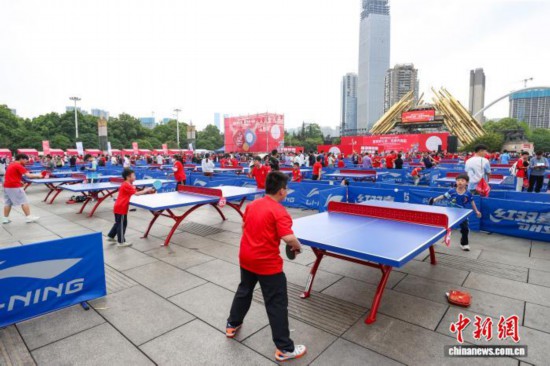 图为乒乓球爱好者在百台千人赛比赛中。 中新网记者 瞿宏伦 摄