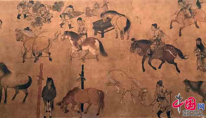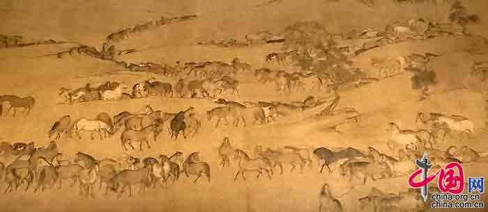 唐人(传)《百马图》卷 局部 摄影 中国网记者 苏向东