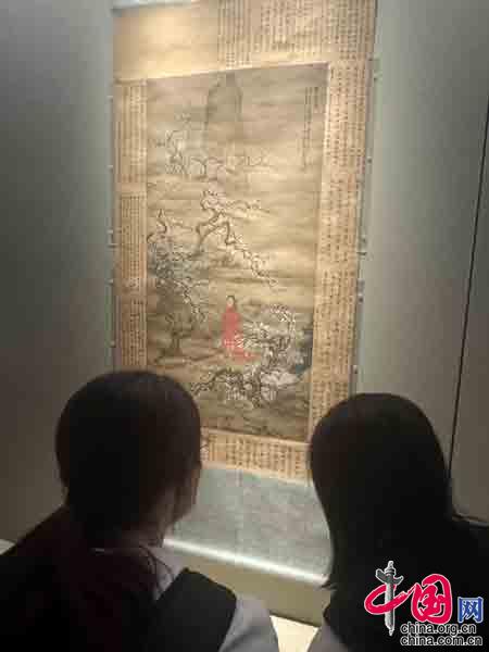 4月21日,观众观赏(清)禹之鼎《履中西郊寻梅》图轴。 摄影 中国网记者 苏向东