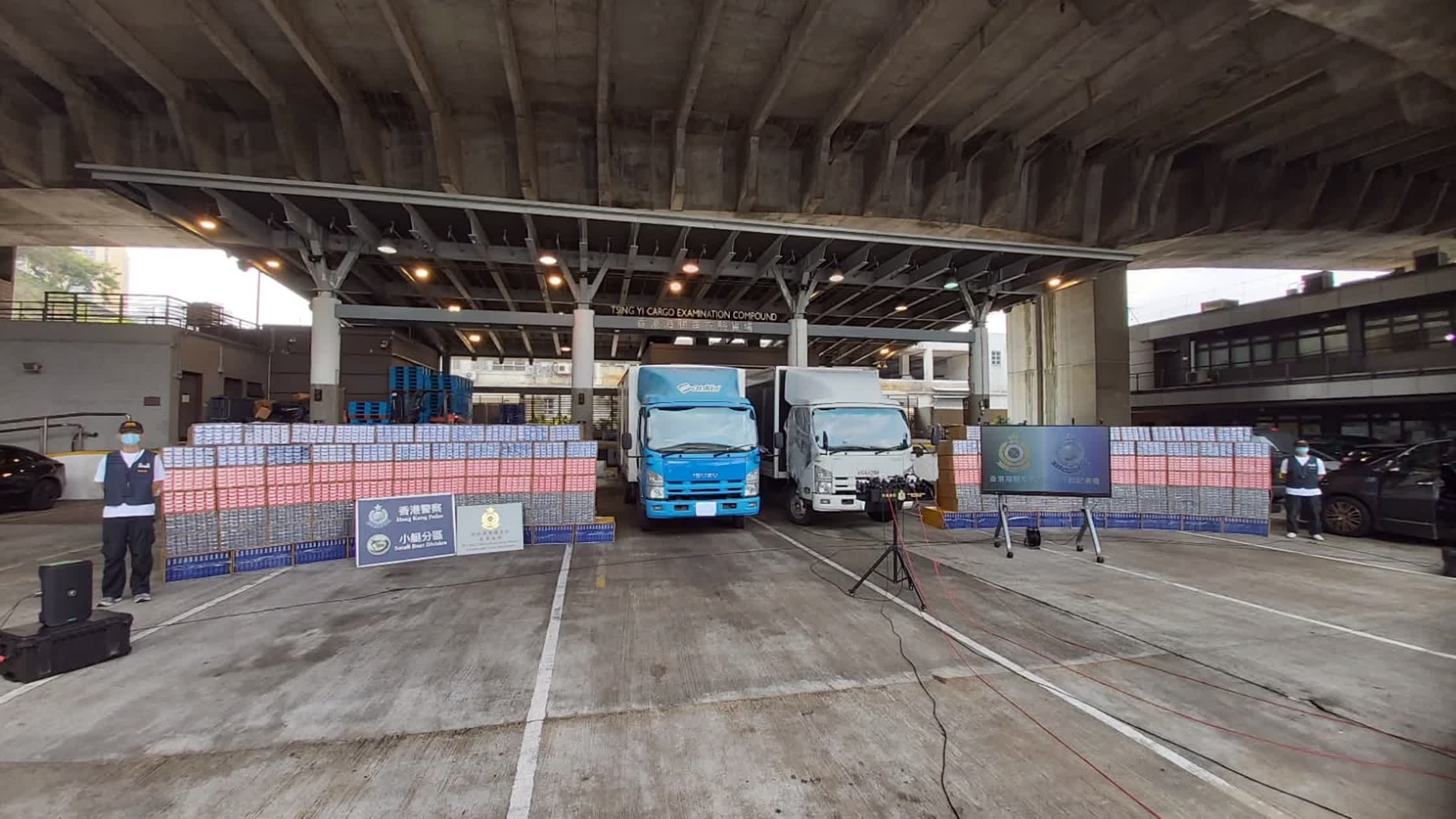 水警小艇分區總區特遣隊主管高級督察達芬拿尼今日(22日)表示,其中兩宗在大嶼山偵破的私煙案,人員透過情報分析,鎖定全港多處走私黑點後,安排人員及水警船隻埋伏。先後在4月13日傍晚及15日晚上,分在梅窩及大澳一帶發現有可疑快艇靠近偏遠岸邊及沙灘,並將貨物從快艇搬上貨車。人員見時機成熟,隨即收網,不法之徒見事敗,登上快艇逃去。兩宗案件共檢118萬支私煙及兩部涉案貨車,私煙市值約553萬元,應課稅值約391萬元。