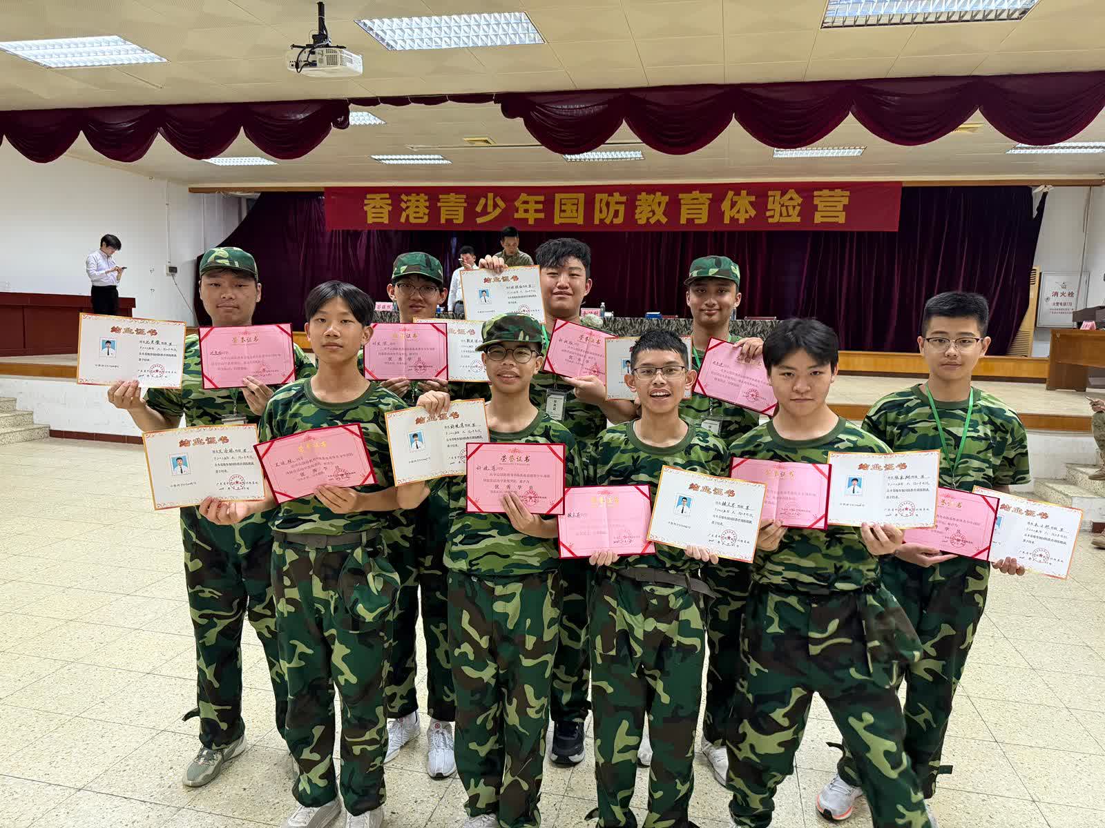 本校極力鼓勵學生參與國防教育體驗營,這個由教育局精心策劃的內地交流活動,成為了許多同學成長路上難忘的一頁。體驗營以國防教育為核心,融合品德培養、技能提升與愛國教育,讓學生在升旗儀式、隊列訓練等活動中磨練自律與堅毅,在團隊協作中學會承擔與信任。透過參訪國防教育展廳、法院、參與國家安全專題講座,學生更深刻體會到國家安全背後的意義,以及作為年輕一代的那份責任。