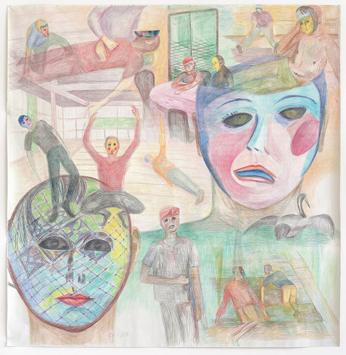 普林茨·古拉姆,《彼处有眼》 ,2022,纸本彩铅,214 × 208 cm,图片由艺术家和麦习沃尔夫提供