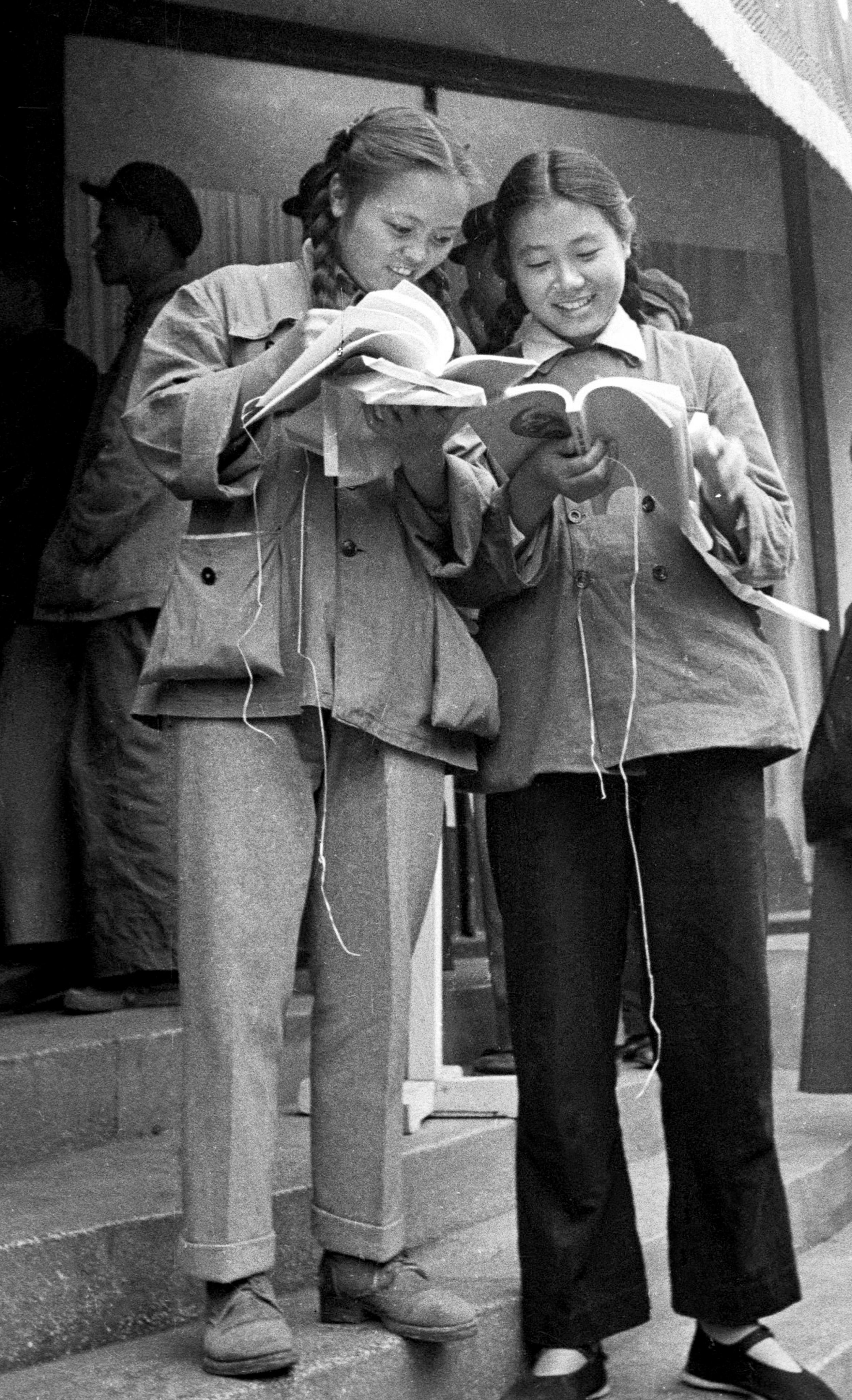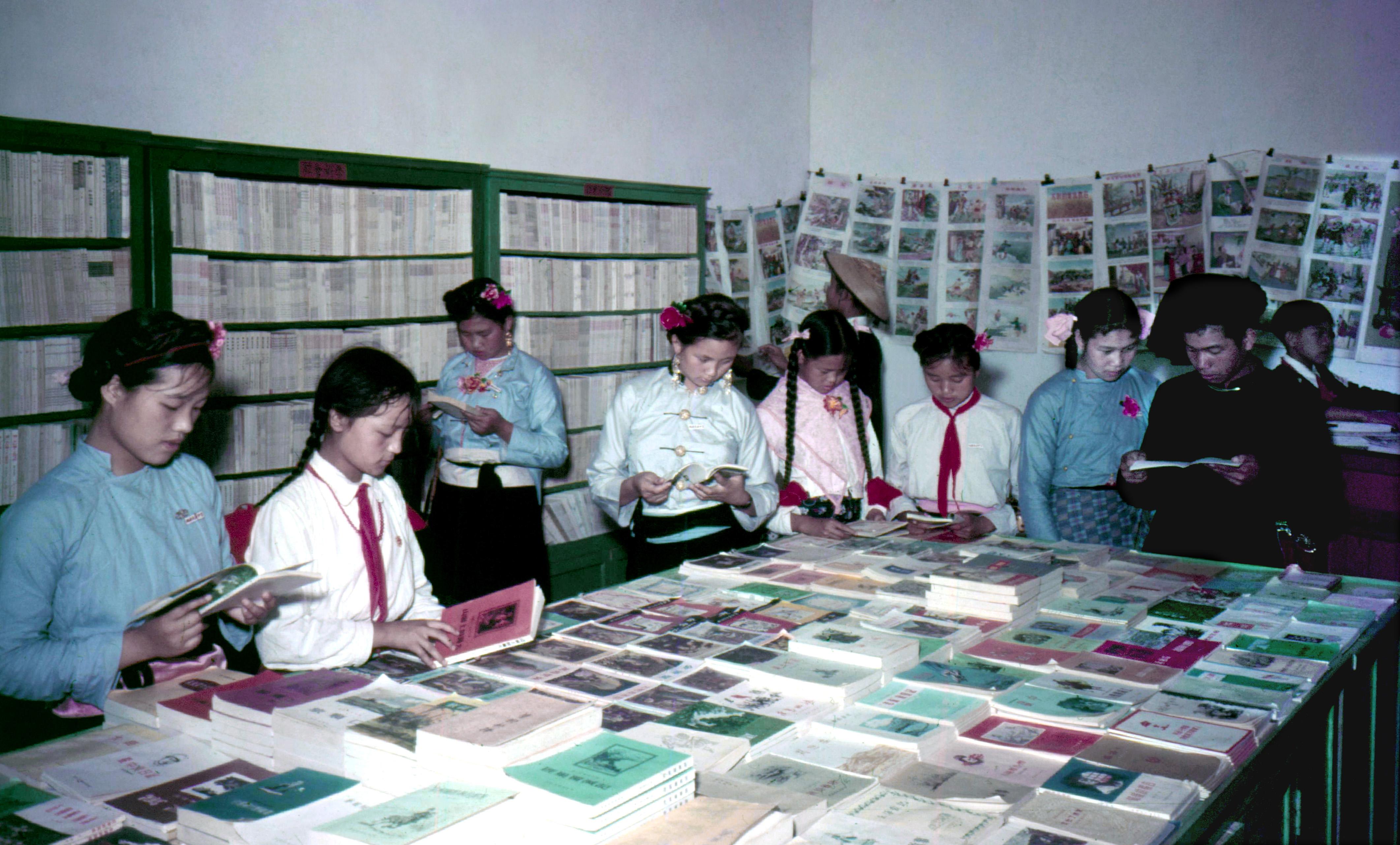 1956年,芒市新华书店,少数民族群众在挑选书籍。