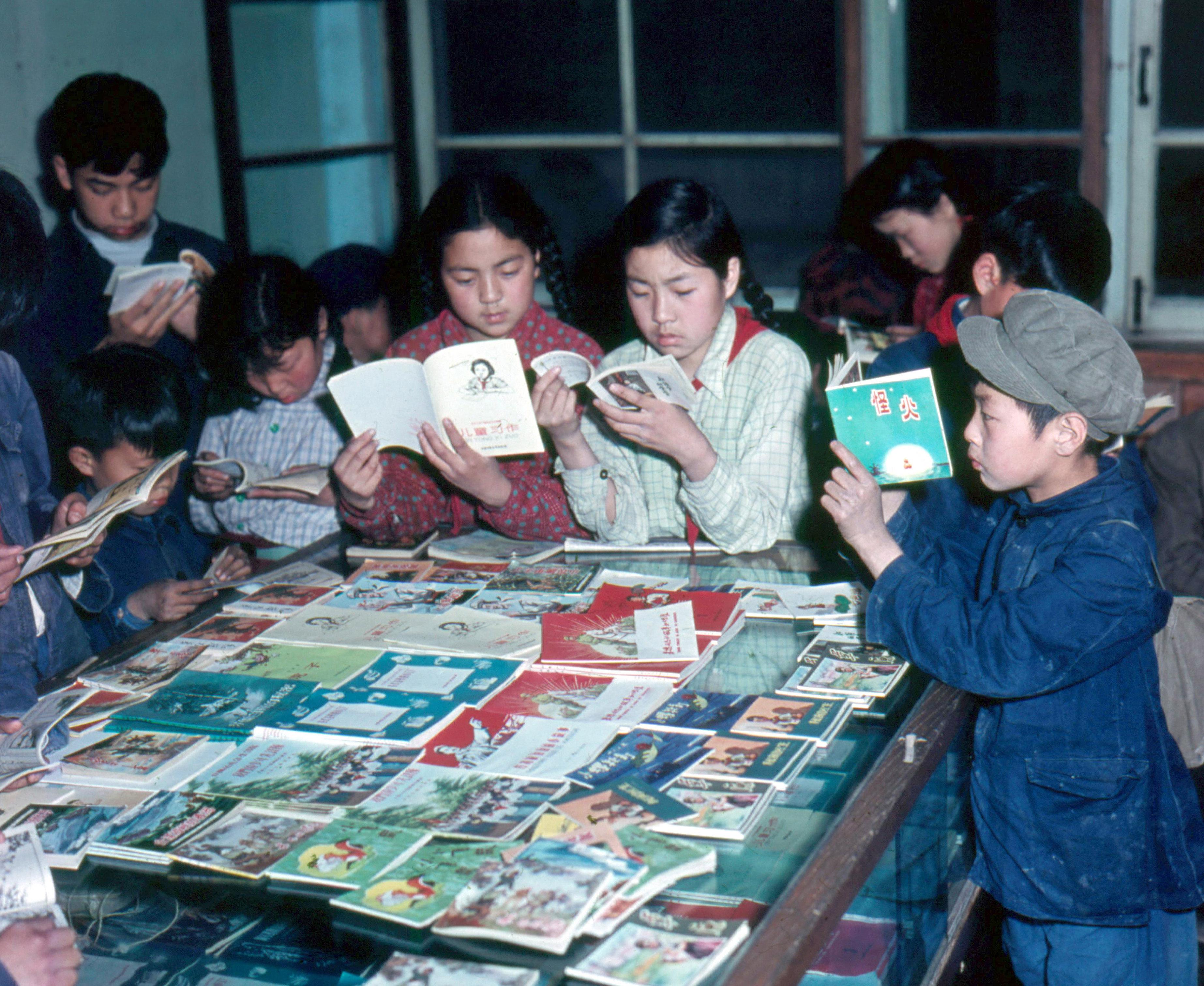 1959年,北京新华书店连环画刊的柜台四周围满了小读者。
