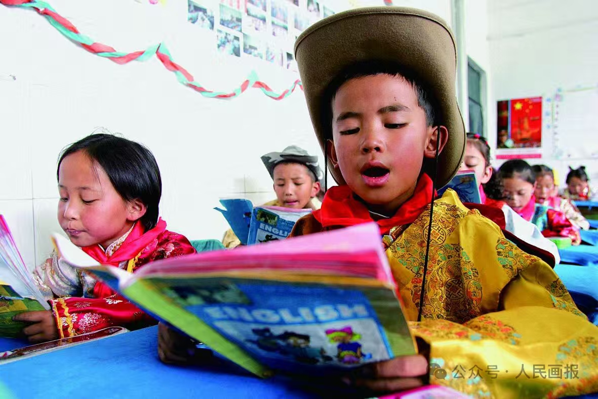 2009年,西藏拉萨第一小学的同学们正在认真朗读英语课文。