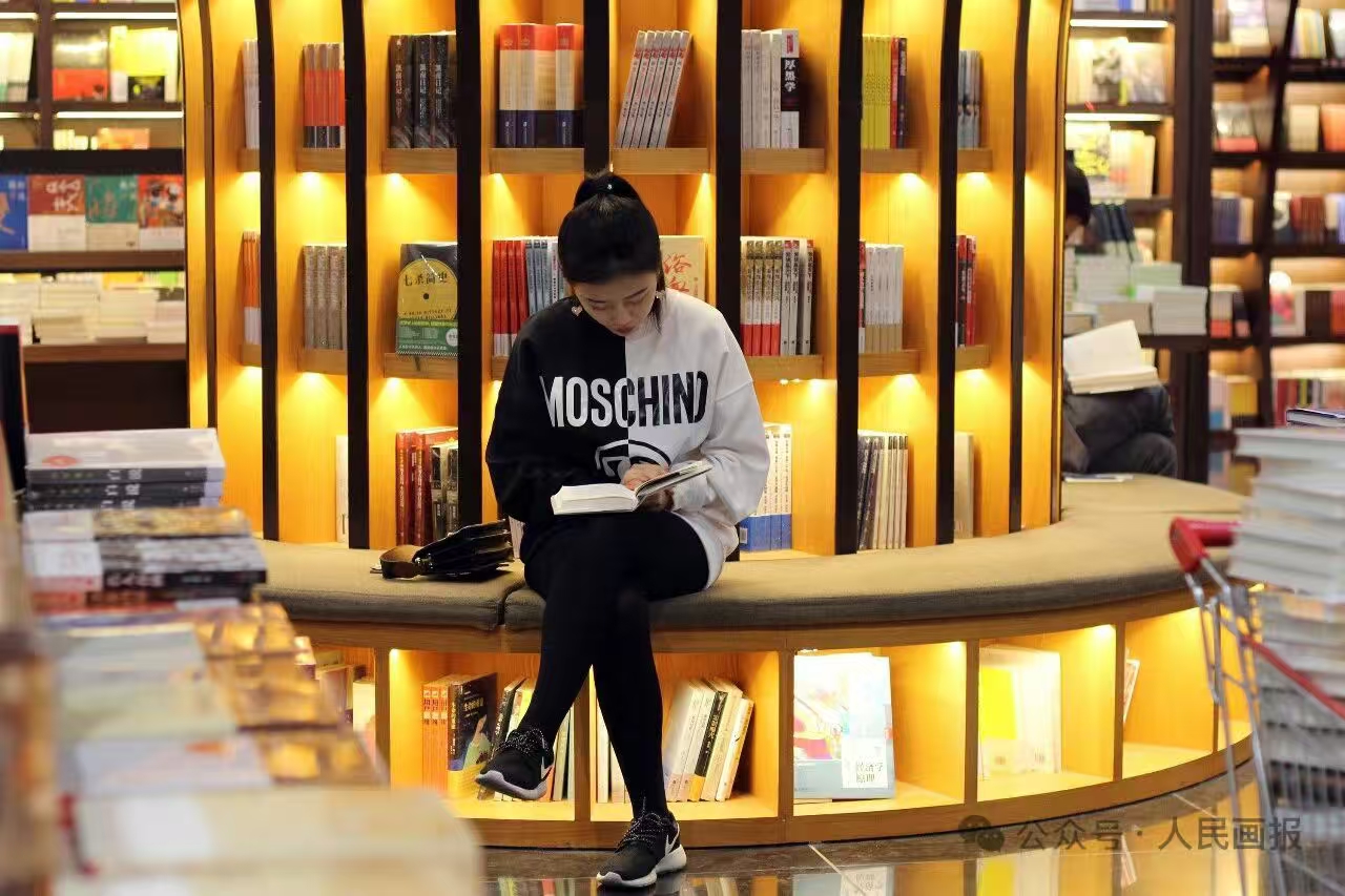 2018年4月20日,上海,钟书阁书店,一位专注看书的女青年。