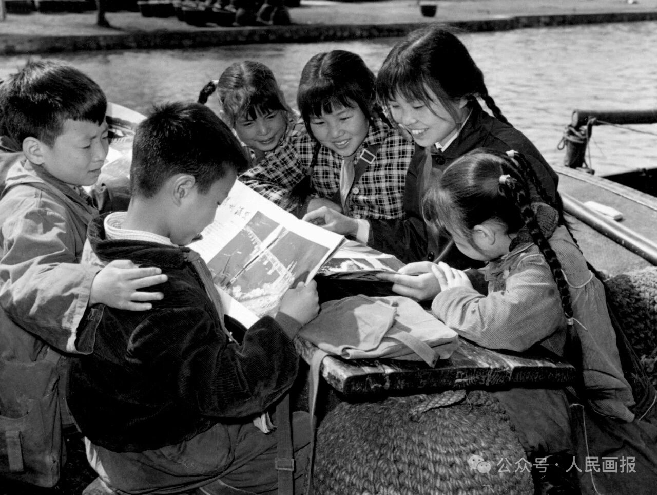 1973年,江苏省宜兴县水上小学的教师指导学生进行课外阅读