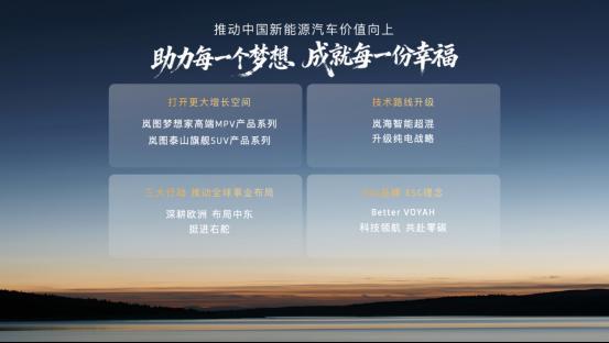 推动中国新能源汽车价值向上,这是时代赋予汽车人的使命,也是岚图对用户作出的郑重承诺。站在智能化下半场的潮头,岚图汽车将与时代同频共振,继续为用户的美好生活赋能,为汽车强国建设贡献岚图力量!