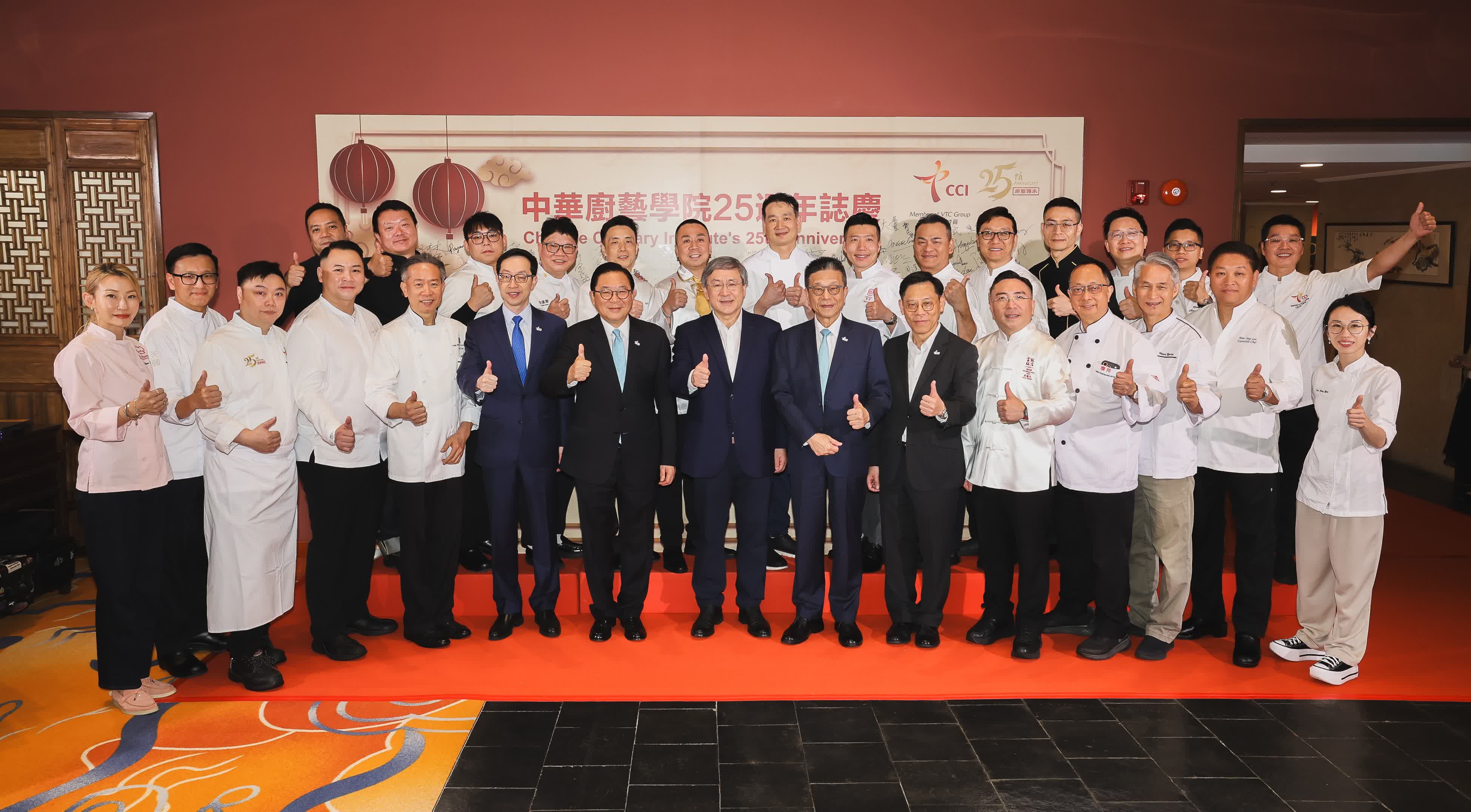 香港文匯報訊(記者 楊梓穎)職業訓練局(VTC)機構成員中華廚藝學院(CCI)日前舉行25周年誌慶晚宴。活動邀得署理政務司司長卓永興擔任主禮嘉賓並致辭,多位政商界代表亦親臨支持,勉勵青年廚師。逾20位CCI「大師級中廚師課程」星級名廚校友重返母校,參與誌慶活動,並以「廚藝傳承‧啟迪創新」為主題,攜手帶領在校學生炮製匠心菜式,向母校致敬,彰顯職業專才教育對本港中廚行業以至社會經濟發展的卓越貢獻。