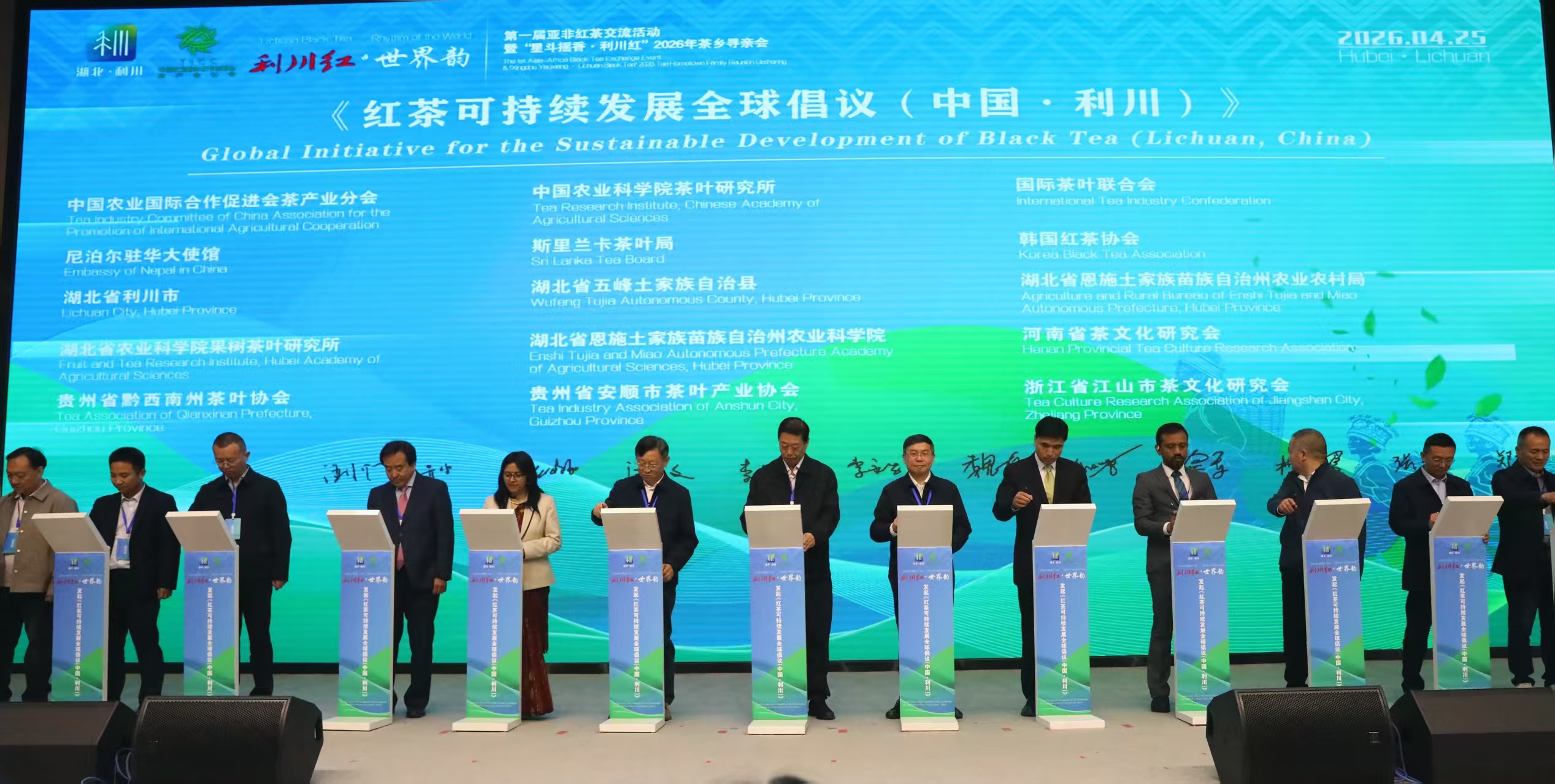 现场发起《红茶可持续发展全球倡议(中国·利川)》。国际茶叶联合会等国内外机构与产区代表共同签署倡议,呼吁全球伙伴共同行动,引领红茶产业迈向更公平、更韧性、更可持续的未来。“这份倡议恰逢其时,十分有意义,让各国业内人士分享实操经验,碰撞新鲜思路,助力行业优化实践、完善标准。”斯里兰卡茶叶局副主任唐岚认为,“希望以倡议为纽带,紧跟国际市场新趋势,深化跨国合作,优势互补、共同提升,携手让世界茶产业走得更远更好。”
